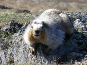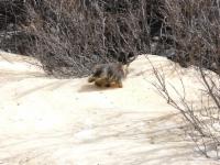 ......................................................................In den Schneeresten tummelt sich ein Murmeltier.