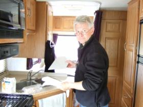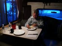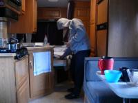 Die erste Nacht ist natürlich sehr spannend. Ein wenig mulmig ist mir schon in der Einsamkeit. Weit und breit ist niemand außer uns. Einige Male werde ich von unbekannten Geräuschen geweckt. Aber offensichtlich sind sie alle harmlos, und nach und nach genieße auch ich unsere erste Übernachtung im RV, obwohl es durchaus etwas wärmer hätte sein können.