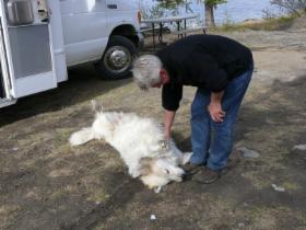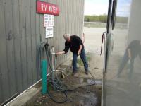 Heute genießt Ulrich den Service eines richtigen Campgrounds. Die Duschen sind groß und sauber, und man kann das Wasser unendlich lange laufen lassen. Nachdem wir uns vom "Platzhund" verabschiedet haben, machen wir uns auf den weiteren Weg. Wir wollen heute bis in die Nähe von Anchorage fahren und morgen, an unserem letzten Tag in Alaska, dann spontan entscheiden, was wir noch tun wollen.