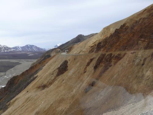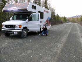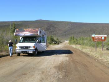 Bis 1972 war der Denali Highway die einzige Straßenverbindung zum Denali National Park. Er führt entlang der Alaska Range nach Nordwesten und bietet mit seiner beeindruckenden Landschaft ein Stück unverfälschtes Alaska. Hier beginnt die Wildnis direkt am Straßenrand. Der Denali Highway ist ca. 140 Meilen (230 km) lang, und nur die ersten 20 Meilen davon sind befestigt. Der Rest ist Schotterpiste - eine harte Belastungsprobe für Mensch und Maschine. Es ruckelt und holpert, dass die Eier im Kühlschrank fast zu Rührei werden. Aber das LKW-Fahrgestell unseres Autos erweist sich als sehr robust und nimmt keinen Schaden.