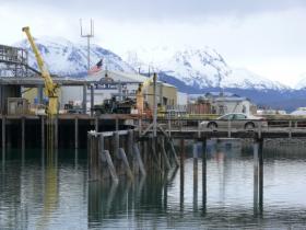 Nachmittags gegen halb vier sind wir in Valdez, einem tristen Örtchen, das auf den ersten Blick fast nur aus Blechhütten besteht. Es ist zweckmäßig und wenig schön. Valdez, das in den Zeiten des Goldrausches entstanden ist, lebt heute fast ausschließlich von seinem Standort als Endpunkt der 1280 Kilometer langen Trans- Alaska-Pipeline. Ein riesiger Ölterminal ist entstanden, und jeden Monat fahren ca. 70 große Tanker von hier aus zu den Raffinerien im Süden. Und es gibt einen Supermarkt!