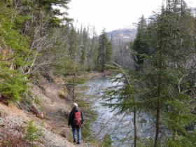 Im Schatten von schneebedeckten Bergen geht es entlang des Ptarmigan Creek richtig hoch in die Berge - eine sehr schöne Wanderung.
