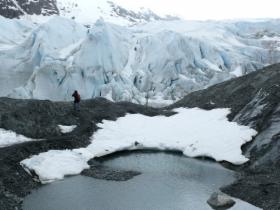 Bevor wir weiterfahren und den Bereich des Harding Icefields verlassen, machen wir einen Abstecher zum Portage Glacier, der ganz idyllisch an einem Gletschersee gelegen ist.