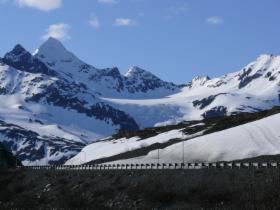 Auf einem kurzen Trail kommen wir recht nah an den Gletscher heran, und können Lawinenabgänge im Schneefeld gegenüber beobachten.