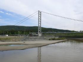 In dieser Gegend bildet sich der Yukon aus mehreren Quellflüssen. Einer von ihnen ist der Tutshi River, der sich an der Yukon Suspension Bridge durch eine enge Schlucht kämpft.