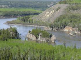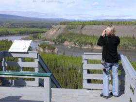 Heute geht die Fahrt weiter durch die endlosen Wälder des Yukon Territory. Hinter Pelly Crossing kommen wir wieder an den Yukon, den Fluss, der dieser kanadischen Provinz den Namen gegeben hat, und bei den Five Finger Rapids schauen wir weit über das Tal, das er in die Landschaft geschnitten hat.