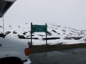 Das Wetter ist fantastisch, die Landschaft großartig. Hier in nur etwas über 1000 m Höhe gibt es keine Bäume mehr, es wachsen Moose, Farne und kleine Blumen. Etwa an der höchsten Stelle des Highways befindet sich die amerikanisch-kanadische Grenzstation. Sie ist nur im Sommer geöffnet, von Mitte Mai bis Mitte September.
