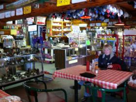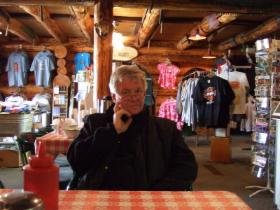 Zum Lunch stoppen wir kurz hinter Beaver Creek an einem Roadhouse, das gleichzeitig Restaurant, Apotheke, Post, Lebensmittelladen, Souvenirgeschäft, Dorftreffpunkt und sicher noch vieles mehr ist. Zur Dekoration gehören sogar Auto-Nummernschilder aus Deutschland.