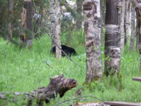 Heute müssen wir früh aufstehen. Im Auto ist noch einiges zu tun, und spätestens um 11.00 Uhr muss es abgegeben sein. Der letzte Morgen in Alaska ist also nicht gerade gemütlich. Dafür bekommen wir noch einen Abschiedsgruß von dem schon gestern gesuchten Baby-Bären, der hinter unserem Auto durch das Gebüsch streift.
