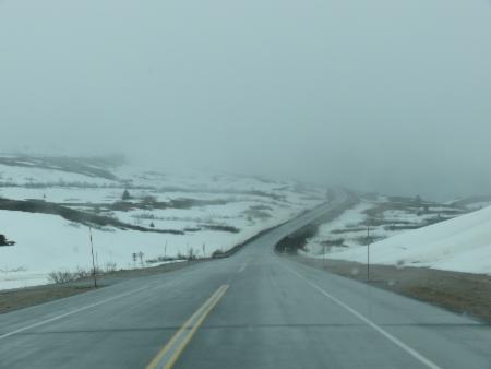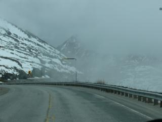 Auf dem White Pass verläuft die kanadisch- amerikanische Grenze. Hier ist es noch richtig winterlich. Es liegt viel Schnee, und dazu hängen die Wolken so tief, dass alles in ein kaltes weißes Licht getaucht ist. Man kann sich gar nicht vorstellen, wie die Goldsucher in dieser unwirtlichen Gegend die Winter überstehen konnten, und wie sie es geschafft haben, Tonnen von Ausrüstung über diese Berge zu bringen.