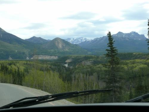 Während wir weiter nach Nordwesten kommen, verändert sich die Landschaft wieder. Bäume tauchen auf, und alles ist grüner als in den Bergen, aber der Frühling ist noch nicht so weit fortgeschritten wir in Haines. Dieser ständige Wechsel zwischen tiefstem Winter und weit fortgeschrittenem Frühjahr ist ja fast schon bezeichnend für unsere Reise.