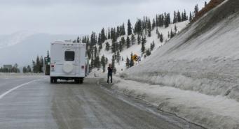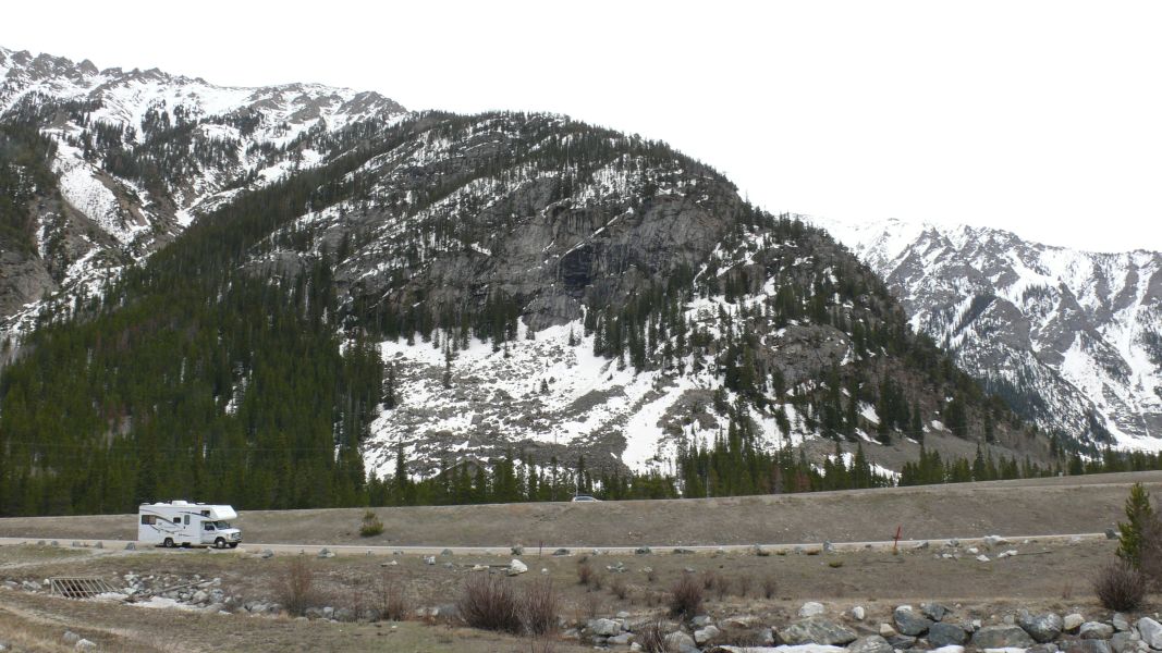 Der Rest der Strecke führt uns zunächst nach Süden bis Salida und dann weiter nach Westen über Gunnison zum Black Canyon of the Gunnison National Park. Es geht ständig bergauf und bergab, aber im großen Ganzen bewegen wir uns ständig in über 2000 Meter Höhe. Am Monarch Pass erreichen wir 11.312 feet (3.450 m). Das Wetter ist durchwachsen, manchmal regnet es, und vor dem Independence Pass hat es geschneit.