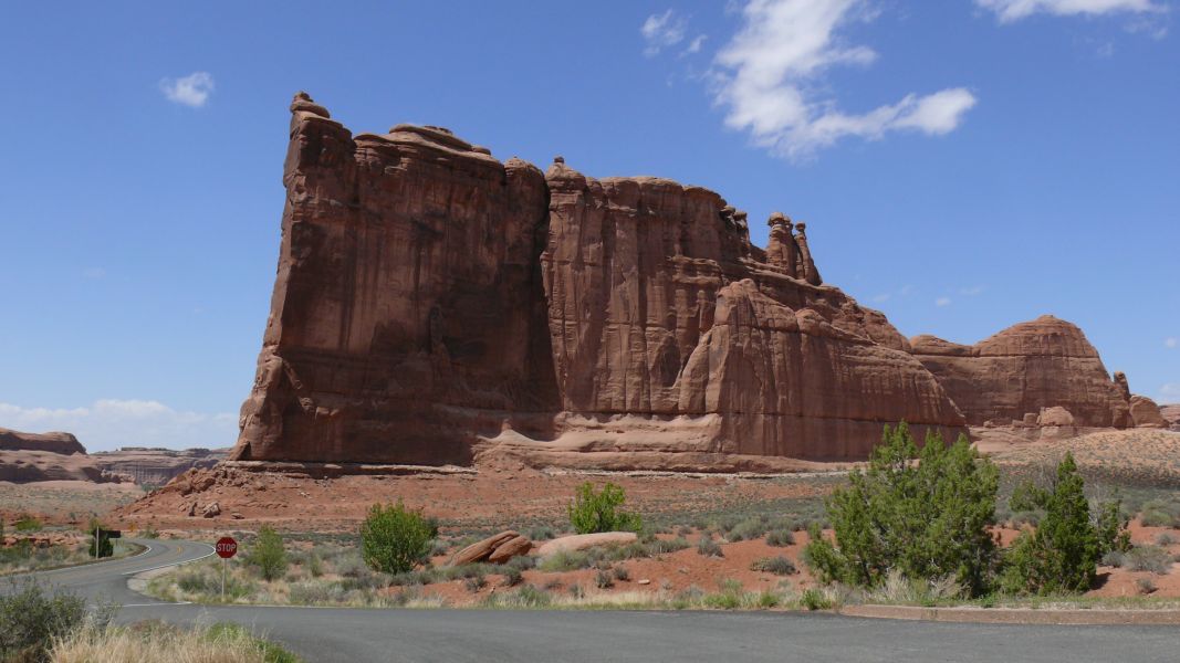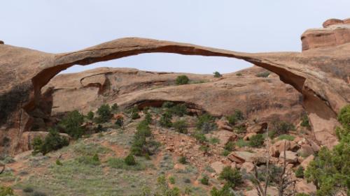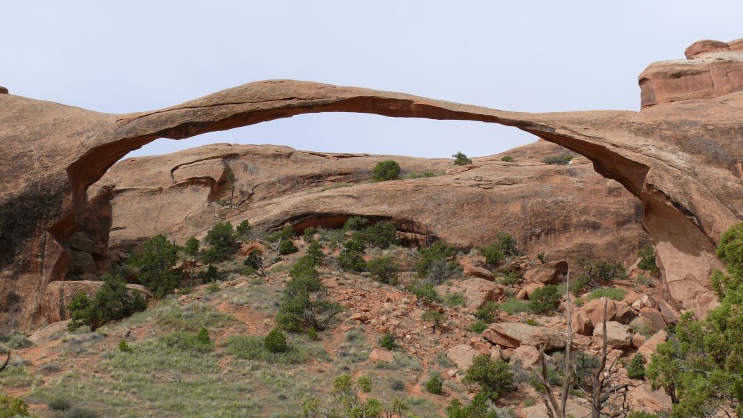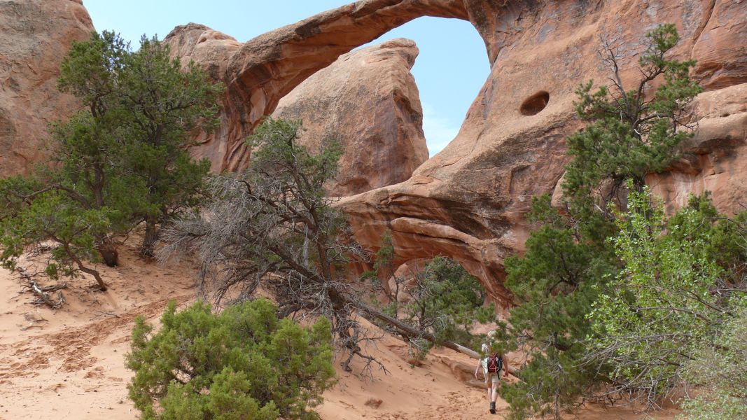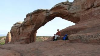 Der Arches National Park verdankt seinen Namen den vielen, durch Erosion entstandenen Felsbögen (Arches). Manche sind eher klein und stabil, andere spannen sich filigran über die Landschaft. Der größte Bogen (Landscape Arch) ist bei einer Stärke von ca. 2 m über 100 m breit. Immer wieder stürzen auch solche Bögen ein, zuletzt im August 2008 der Wall Arch, der mit 10 m Höhe und 22 m Breite zu den eher großen zählte. Der Broken Arch wirkt trotz seines Namens noch sehr stabil, und wir können ganz relaxed in seinem Schatten eine Pause machen.