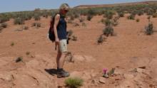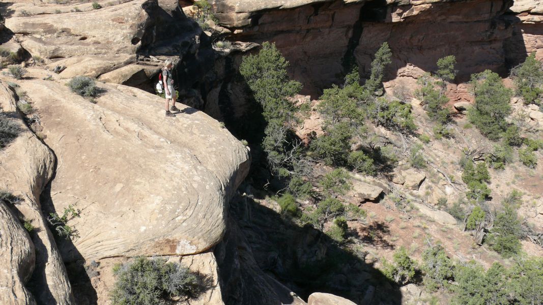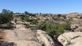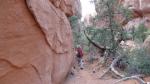 Wie schon im Arches National Park, ist der Trail durch kleine Steinhäufchen, sog. Cairns, gekennzeichnet, und manchmal müssen wir konzentriert suchen, um das nächste Zeichen zu finden.