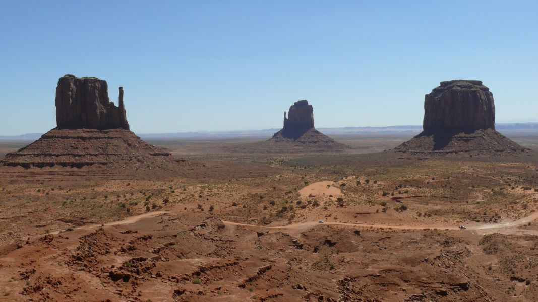 Spektakulär erheben sich die Tafelberge des Monument Valley vor uns. Aus alten Filmen ist der Blick teilweise vertraut, schon vor dem zweiten Weltkrieg drehte John Ford seine Western in diesem Tal, und John Wayne war Stammgast hier. Aber auch für Sergio Leones "Spiel mir das Lied vom Tod" war das Monument Valley Kulisse, und Dennis Hopper und Peter Fonda fuhren in "Easy Rider" durch eben diese Landschaft.