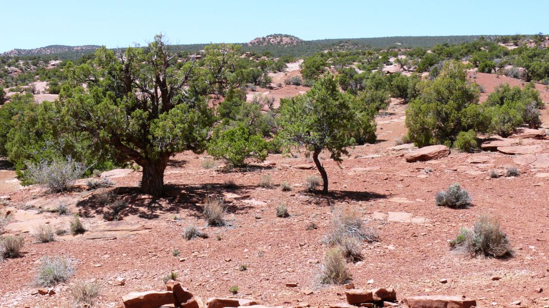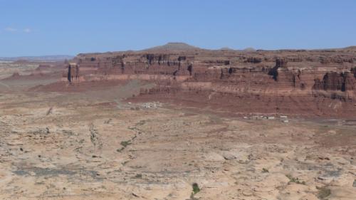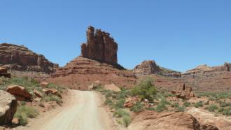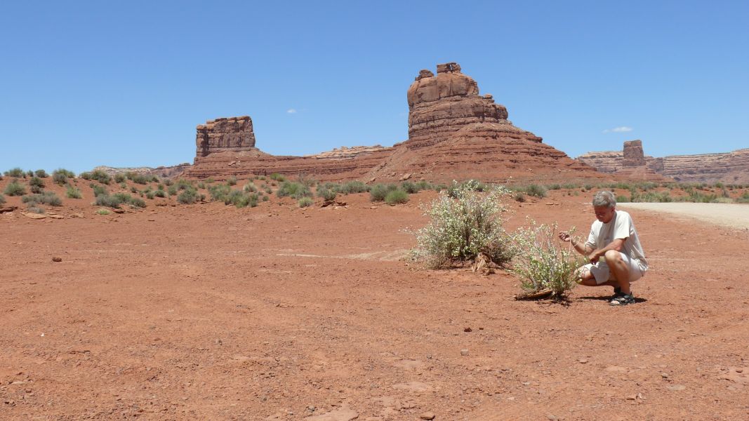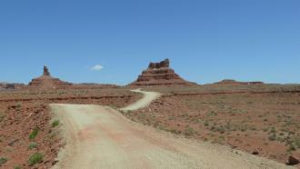 Unser heutiges Ziel ist der Colorado. Auf der State Road 261 wollen wir nach Norden über das Plateau fahren. Vorher machen wir aber noch einen kleinen Umweg durch das Valley of the Gods, das Tal der Götter, ein Tal, das in seiner Erscheinung und in seiner Beschaffenheit dem Monument Valley ähnelt, das aber sehr viel rauer und touristisch nur wenig erschlossen ist. Die Navajos glauben, dass Felsformationen mächtige Orte sind, in denen die Geister wohnen, und im Valley of the Gods findet man einige der bemerkenswertesten. Diese imposanten Monolithen sind nach Navajo-Glauben zu Stein gewordene Krieger, deren Kraft und Stärke jungen Kriegern helfen und sie beschützen kann.