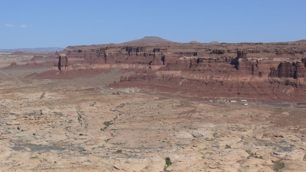 Vorbei am Natural Bridges Monument und am Fry Canyon fahren wir zum Colorado. Hier in der Glen Canyon National Recreation Area fließt er noch träge durch seine in Jahrmillionen gegrabene Schlucht, er ist noch nicht zum Lake Powell aufgestaut, und er hat auch noch nicht den spektakulären Grand Canyon erreicht. Trotzdem ist das Panorama beeindruckend.