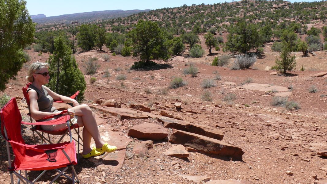 Wieder "daheim", sitzen wir noch eine Weile draußen und genießen die Abendsonne. Heute gibt es Pizza, die wir bei einem kurzen Stopp in Moab gekauft haben.