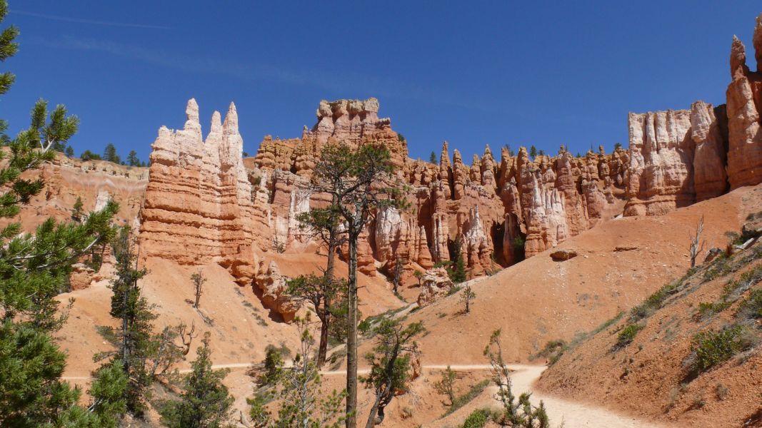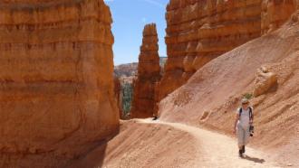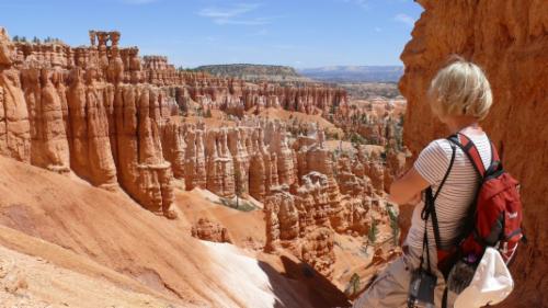 Vom Sunset Point aus folgen wir dem Queens Garden Trail steil hinunter in den Canyon. Der Anblick ist faszinierend, ein Postkartenmotiv nach dem anderen. Dieser Urlaub ist ein Urlaub der Bilder, all das, was wir hier sehen, lässt sich mit Worten kaum beschreiben. Ich suche ständig nach einer weiteren Steigerung in der Schilderung, kann mich am Ende aber immer nur wiederholen. Da müssen die Fotos für sich sprechen.