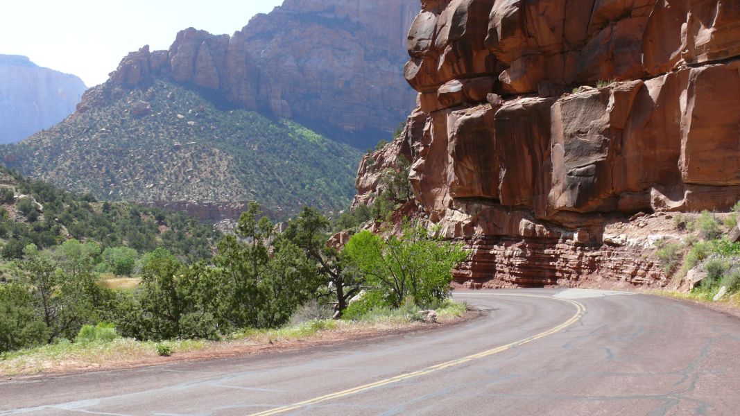 Wir kommen von Osten her in den Zion N.P. und müssen zwei Tunnel durchqueren. Der zweite ist so eng, dass es nur im Konvoi hindurch geht und wir uns an die Mittellinie halten müssen, um nicht seitlich anzustoßen, obwohl wir mit unserem Fahrzeug ja noch nicht zu den richtig Großen zählen!