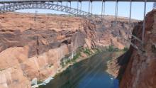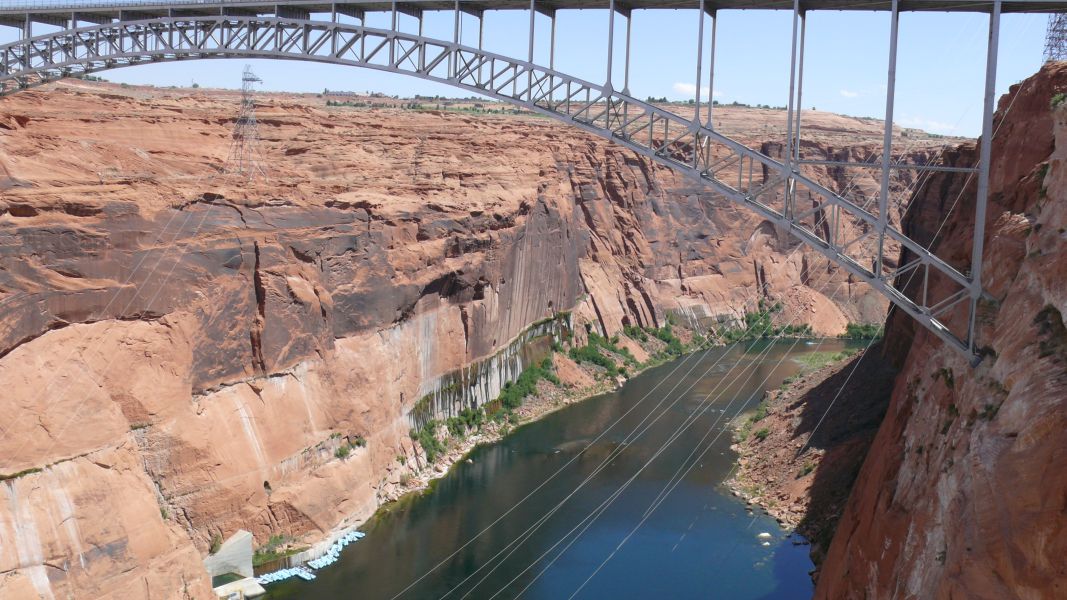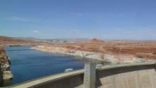 In Page allerdings steigen wir aus und besichtigen den Glen Canyon Staudamm, ein monumentales Bauwerk, das den Colorado River zum Lake Powell, dem zweitgrößten Stausee der USA, aufstaut. Der Staudamm wurde 1964 fertiggestellt, die Stadt Page entstand aus einem Camp für die am Bau beteiligten Arbeiter. Im Carl T. Hayden Visitor Center erfährt man alles Wissenswerte. Dafür muss man allerdings durch einen Sicherheitscheck wie beim Flughafen. Wir schließen uns einer Führung an, die ganz individuell wird, weil außer uns nur noch zwei weitere Leute teilnehmen. Es ist sehr interessant und informativ.