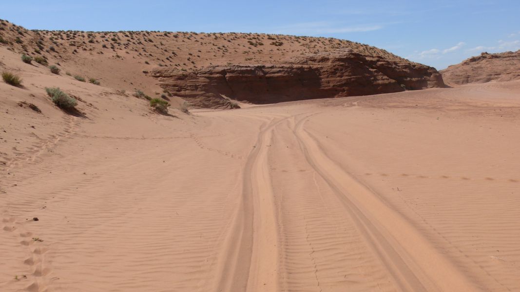 Nun wie dem auch sei, wir fahren weiter nach Südwesten in Richtung Page. Die Landschaft, durch die wir fahren, erscheint uns eher öde, und auch ein nachträgliches Studium der Fotos, die wir sporadisch gemacht haben, ergibt nichts Spektakuläres. Vielleicht sind wir schon zu verwöhnt. Zumindest nimmt mit jeder Meile Abstand vom Zion auch die Anzahl der "Mitreisenden" ab. Nachdem wir Kanab passiert haben, einen kleinen Ort in Utah nahe der Grenze zu Arizona, durchqueren wir die Paria Wilderness.