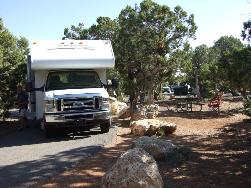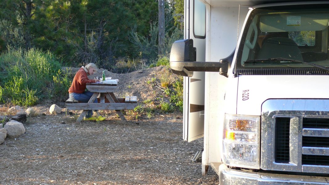 Leider verschlechtert es sich gegen Abend rapide, und als wir am Campground im Black Canyon National Park ankommen, regnet es in Strömen. Gut, dass wir unser Haus dabei haben! Der Platz ist recht schön, es gibt sogar Stromanschluss. Was will man mehr? Und während ich hier noch schreibe, hört es auf zu regnen, und die Sonne kommt heraus.