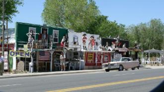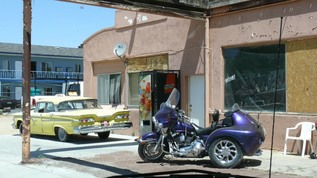 Von Williams aus fahren wir ein kurzes Stück auf dem Highway # 40, verlassen ihn aber in Seligman, um auf der alten Route 66 in Erinnerungen an die 60’er und 70’er Jahre zu schwelgen. Easy Rider, die Vision von der großen Freiheit, das Blubbern einer Harley, … – Jugendträume J