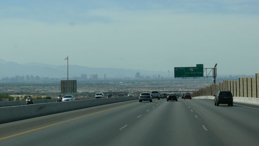 Auf dem Highway #93 fahren wir weiter Richtung Las Vegas. Es gibt immer noch keine nennenswerten Kurven. Die Straße verläuft schnurgerade am Rande der Mojave-Wüste entlang, rechts und links wachsen Yuccas, Joshua Trees und Kakteen.