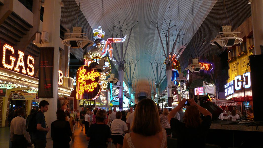 Später am Abend fahren wir noch in die Fremont Street, ins alte Las Vegas. Hier war lange Zeit das Zentrum der Vergnügungsindustrie, hier gibt es die traditionellen Casinos, wie das berühmte Golden Nugget.