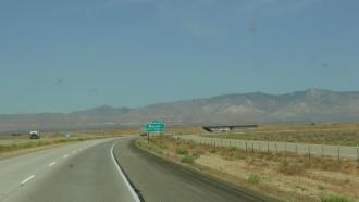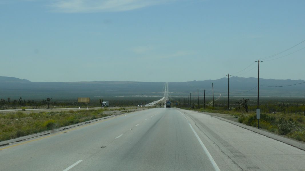 Zunächst aber müssen wir durch die Wüsten Nevadas und Südost-Kaliforniens. Es ist sehr karg hier, und die Luft steht. Es sind sicherlich 45° Cel.
