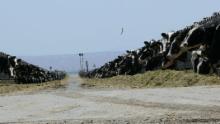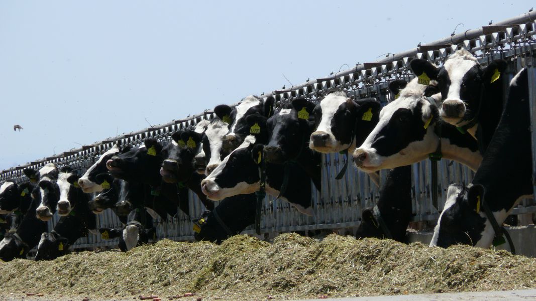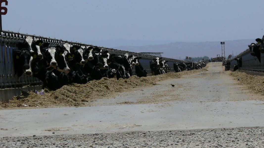 Es bleibt leider nicht so romantisch. An der Straße liegen auch riesige Milchwirtschaftsbetriebe. In unendlich langen Reihen stehen die Kühe und stecken ihre Köpfe durch eine Art Guillotinenöffnung, vor der ihr Futter liegt. Außer der Beugung des Kopfes beim Fressen ist ihnen offensichtlich keine andere Bewegung zugestanden. Erschreckend!