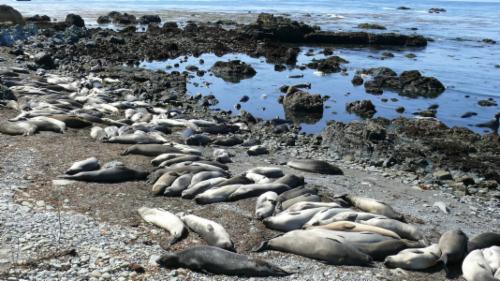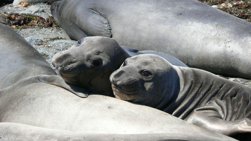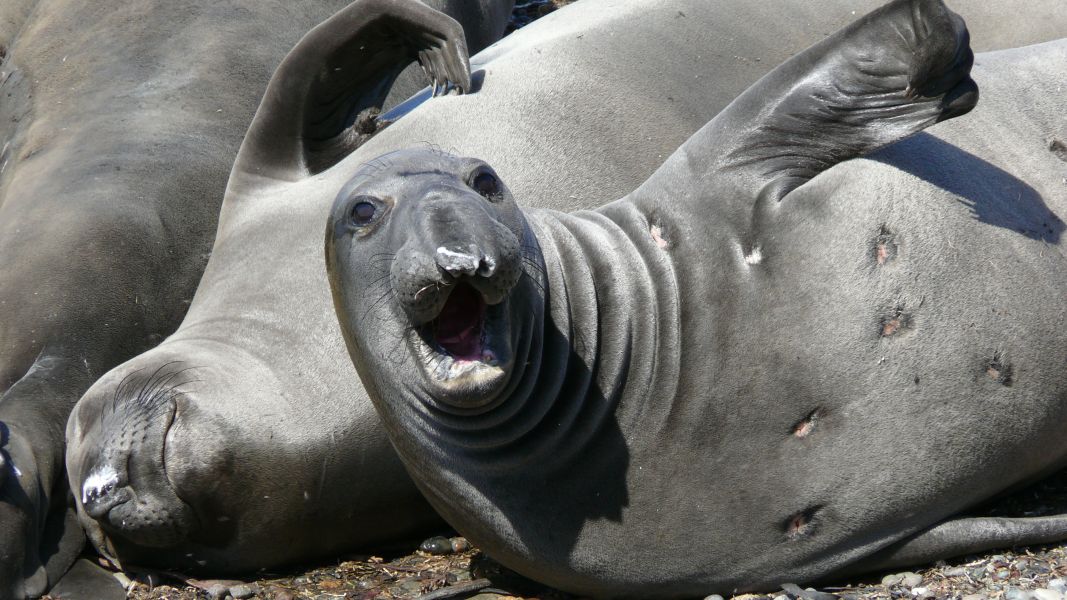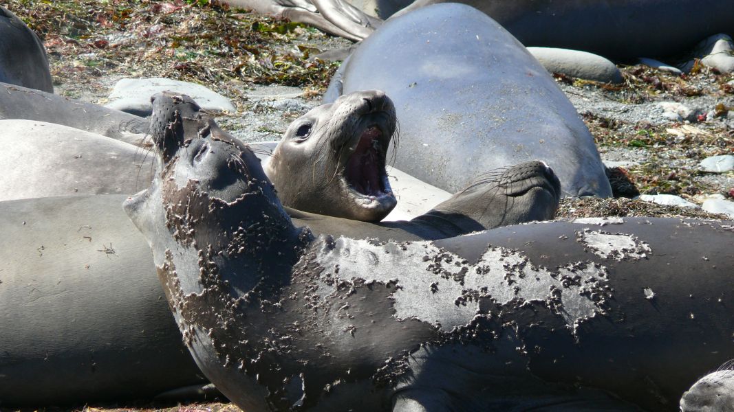 Dann beginnen wir unsere Sightseeing Tour auf dem Highway #1 entlang der Pazifikküste. Gleich beim ersten Halt stoßen wir unversehens auf eine Kolonie See-Elefanten. Die Geräusche, die sie von sich geben, sind nicht nur fein, und auch die Duftwolke, die ab und an herüber weht, ist wohl nur für See-Elefanten angenehm – trotzdem ist es toll. Zu der Kolonie gehören bestimmt hundert Tiere. Einige sind im Wasser, viele liegen faul am Strand, und manchmal kommt es zu der ein oder anderen Rangelei.