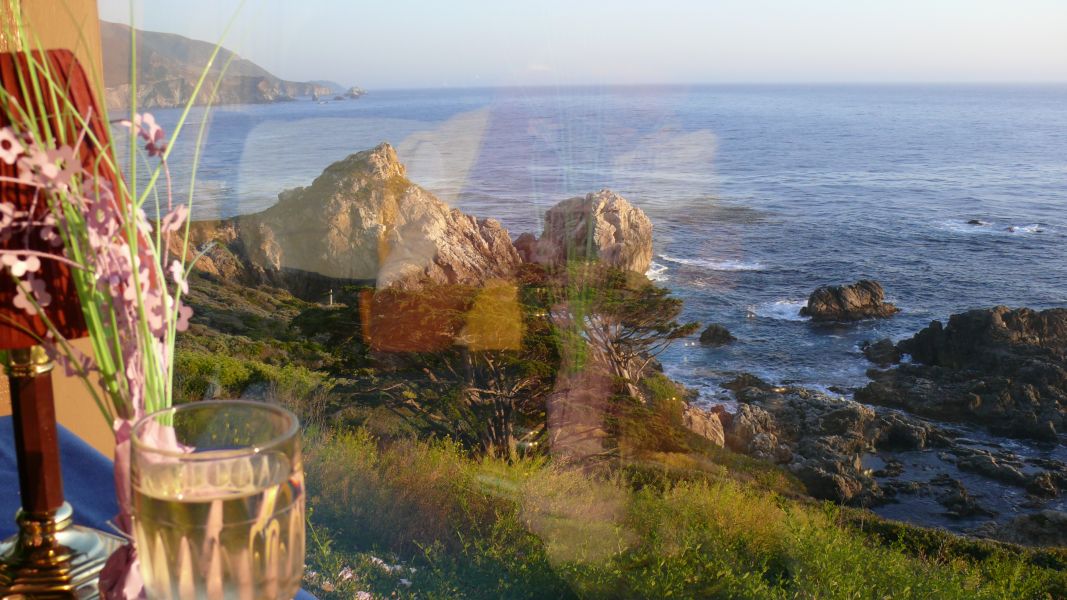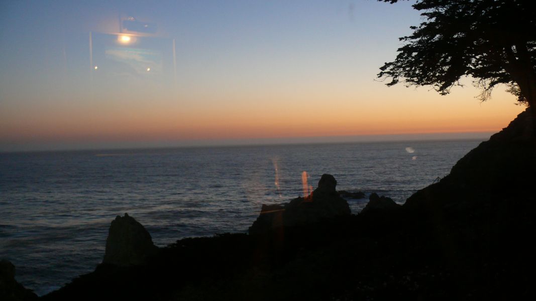Die beiden Campingplätze im Big Sur, die es gibt, sind belegt, für 190$ die Nacht könnten wir nur noch eine Cabin bekommen. Da verzichten wir lieber und werden uns einen schönen Platz in einer Parkbucht an der Straße mit Blick auf das Meer suchen. Für das Abendessen reservieren wir einen Tisch im Rocky Point Restaurant hoch oben auf einer Klippe. Wir sitzen sehr angenehm, das Essen ist gut – und natürlich mal wieder: der Ausblick ist fantastisch, der Sonnenuntergang wunderschön.