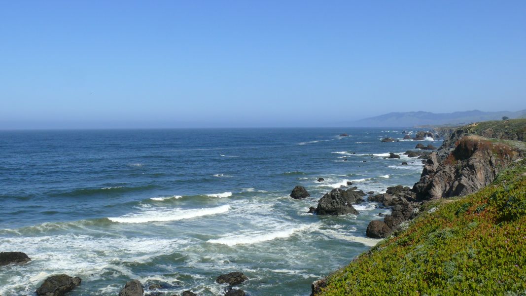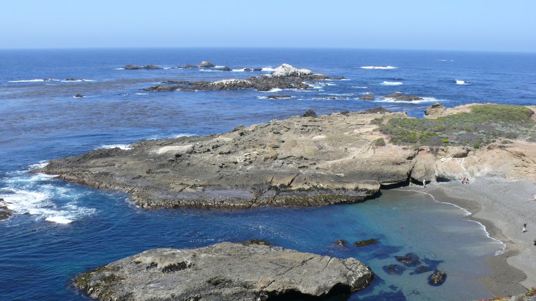Und nachdem wir Paso Robles hinter uns gelassen haben, stoßen wir südlich von Cambria endlich auf die Küste und den Highway #1. In den nächsten Tagen werden uns die Ausblicke auf Meer und Klippen faszinieren. Im San Simeon State Park, ein paar Meilen weiter nördlich, finden wir einen Platz zum Übernachten. Der Strand ist gut zu Fuß zu erreichen. Nach den vielen heißen und trockenen Tagen ist es schön, einmal wieder das Meer zu riechen und den Wind zu spüren.