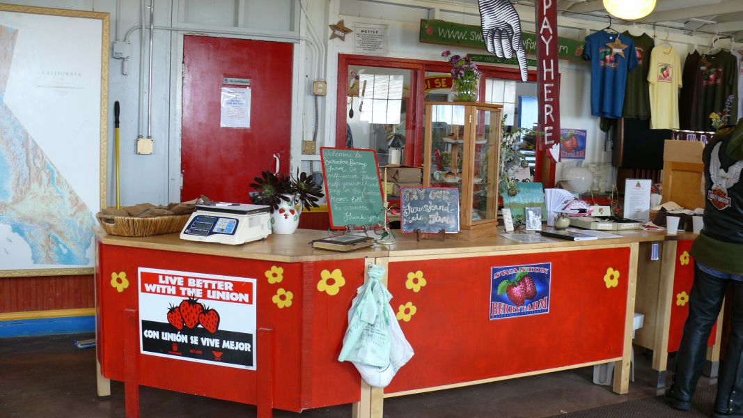 Der Kuchen und die Marmelade sind ausgezeichnet, eine empfehlenswerte Adresse. Man achte auf dem Highway #1 auf den gelb angestrichenen Truck mit der großen Erdbeere nördlich von Davenport.