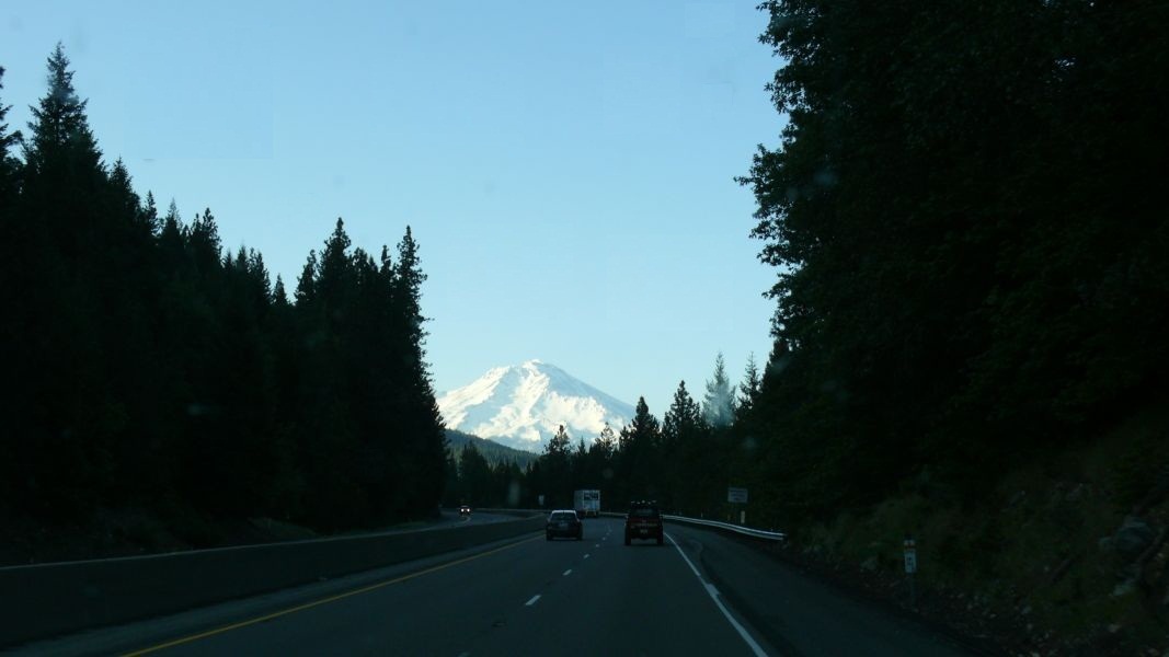 Nun geht es aber wirklich flott nach Norden – sieht man einmal von dem Stau vor einer Baustelle ab. Gegen 19 Uhr sind wir in der Nähe des Mount Shasta, des ersten Vulkans der Cascade Range, den wir in diesem Urlaub sehen werden. Die Cascade Range ist ein Gebirgszug vulkanischen Ursprungs, der parallel zur Westküste Nordamerikas verläuft. Die Cascades erstrecken sich vom Süden British Columbias über die US-Bundesstaaten Washington und Oregon bis nach Nord-Kalifornien. Sie stellen einen Teil des Pazifischen Feuerrings, des "Ring of Fire" dar, einer Kette vulkanisch aktiver Gebirge rund um den Pazifik.