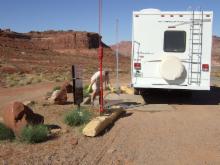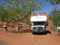 Das Monument Valley liegt auf dem Colorado Plateau an der südlichen Grenze zwischen Utah und Arizona in der Nähe der Ortschaft Mexican Hat. Es ist Indianergebiet und wird von Navajos verwaltet. Auch die Infrastruktur vor den Toren des Parks ist fest in der Hand einer Navajo-Familie, den Gouldings, der quasi der gesamte Ort von Hotel über Restaurant, Laden, Kino, Tankstelle, Flughafen, Schule und Krankenhaus zu gehören scheint. Der Campingplatz ist auf jeden Fall sehr angenehm, gut gepflegt und schön angelegt zwischen den Ausläufern der eindrucksvollen Felsen des Monument Valleys!