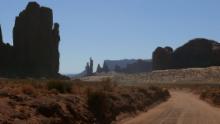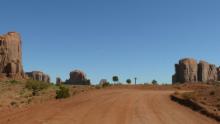Die knapp 20 Meilen lange Fahrt über die unbefestigte Straße ist wunderschön. Während man im Monument Valley schon manchmal den Eindruck hatte, durch eine Filmkulisse zu fahren, weil alles so perfekt, fast unwirklich imposant war, fühlen wir uns hier näher an der Wirklichkeit und vermögen die Erhabenheit der Felsen besser zu spüren. Wir können gut verstehen, dass die Navajos diesen Bergen eine besondere Bedeutung geben.