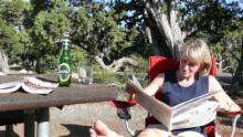 Obwohl wir heute Morgen schon nett begrüßt werden von einem Squirrel, das sich neben unserem Auto aus dem Boden buddelt, entschließen wir uns, nicht auf dem Campground zu frühstücken, sondern einen Platz mit Blick auf den Pazifik zu suchen. Squirrel werden wir noch reichlich finden. Sie sind gar nicht scheu, und es gibt sie überall da, wo Menschen sind. Offensichtlich werden sie stets gut gefüttert. Zunächst aber beobachten wir bei Kaffee und Knäcke die Bemühungen der Surfer, sich von den Wellen tragen zu lassen.