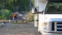 Ulrich ist etwas genervt. Er muss eine Schublade reparieren. Sie hatte sich in einer Kurve selbständig gemacht, war heraus gefallen und hatte ihren Inhalt (Gläser und Dosen mit Lebensmitteln) im Auto verstreut. Glücklicherweise ist nichts kaputt gegangen. Die Schublade ist mittlerweile auch gerichtet, und wir erkunden bei einem Abendspaziergang noch ein wenig die Umgebung des Campingplatzes.