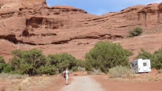 Der Devils Garden Campground liegt im hinteren Teil des Nationalparks und ist wunderschön zwischen roten Felsen angelegt. Es ist vor dem Abendessen noch Zeit für eine Wanderung zum Broken Arch.