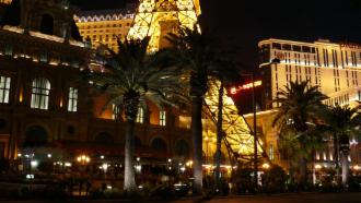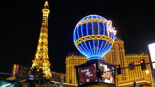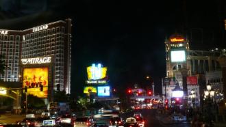 Als wir wieder herauskommen, ist es dunkel geworden, und die Lichter, die natürlich schon den ganzen Tag brannten, sind nun viel besser zu sehen. Die Leuchtreklamen glitzern mit der Beleuchtung der Hotels, Bars und Restaurants um die Wette. Auch die Straßen füllen sich zusehends, und vor dem ein oder anderen Hotel gibt es kleinere Shows. Die großen finden natürlich in den Hotels statt und kosten Eintritt. Das öffentliche Leben in Las Vegas ist locker, überall darf geraucht werden, und auf den Straßen wird offen für Prostitution geworben – wir haben einen ganzen Stapel von Angebotskarten mit Fotos, Preisen und Telefonnummern gesammelt. An manchen Straßenecken steht gleich eine ganze Reihe von Leuten hintereinander, die einem diese Offerten in die Hand drücken.