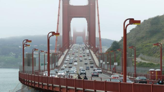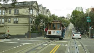 In San Francisco haben wir eine Mischung aus Sonne und vielen Wolken, leider wird es besonders nebelig und unangenehm, als wir über die Golden Gate Bridge wieder aus der Stadt hinaus fahren. Aber vorher geht es in rasantem Tempo ins Gewühl der Straßen von San Francisco.