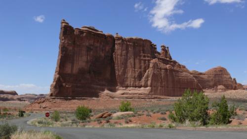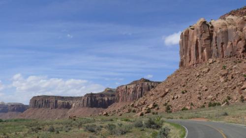 Bis zum Arches N.P. sind es zwar nur knapp 200 Meilen von hier, aber vier Stunden werden wir wohl brauchen. Über Cortez fahren wir in Richtung Monticello. Nachdem wir eine Gegend mit kleinen, eher ungepflegten Farmen hinter uns gelassen haben, geht es durch weites, flaches Buschland. Unbemerkt überqueren wir die Grenze nach Utah, und in Monticello biegen wir auf die #191 nach Norden ein. Bald schon befinden wir uns innerhalb atemberaubender geologischer Formationen, die uns eine Idee davon geben, was Erosion alles zu leisten vermag. Wir kommen aus dem Staunen gar nicht heraus.