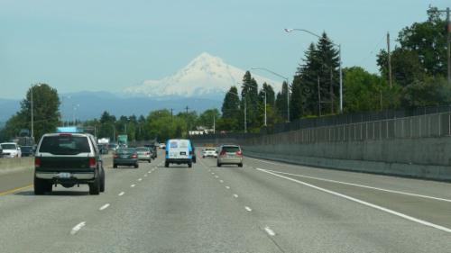 In der Nähe von Portland sehen wir den nächsten Vulkan auf dem Ring, Mount Hood (3425 m), den höchsten Berg Oregons. Genau wie der Mount Shasta hat er die ganz typische Kegelform eines Vulkans. Er gilt als aktiv, aber es hat schon lange keine Ausbrüche mehr gegeben.