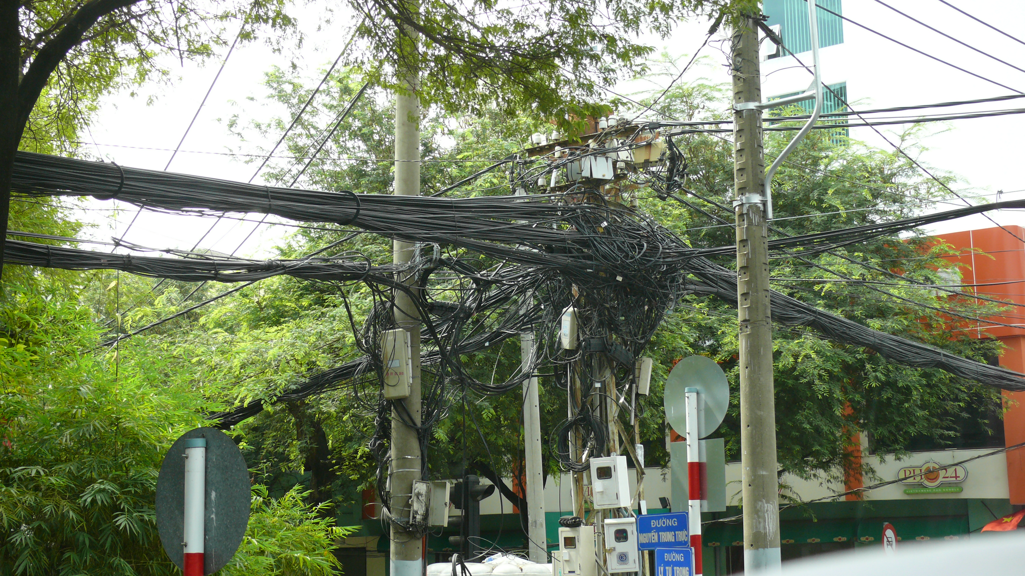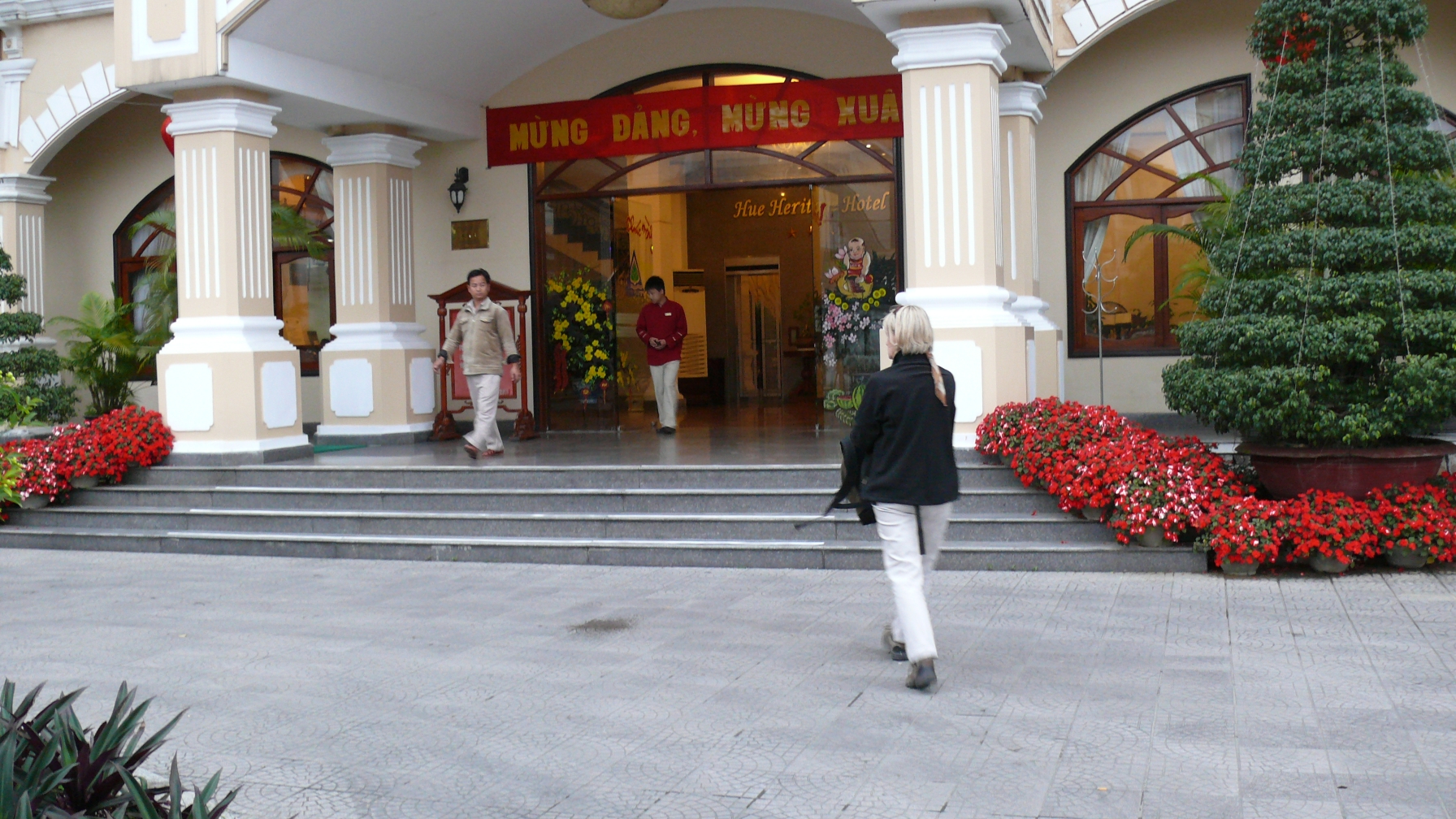 Nach der obligatorischen Mittagspause mit gebratenen Nudeln (im Phuoc Thanh, sehr gut) fahren wir in unser Hotel, das Hue Heritage. Passend zur alten Königsstadt strahlt auch dieses Hotel einen eher morbiden Charme aus – alt, ehemals ehrwürdig – nicht unsympathisch. Auch hier gibt es, wie bisher in jedem unserer Hotels, Wlan. Dass es mit dem Internetzugriff nicht immer ganz reibungslos klappt, versteht man, wenn man sich die losen Kabelenden anschaut, die malerisch die Router umgeben, die in jedem Flur hängen. Aber letzten Endes funktioniert es dann doch.
