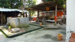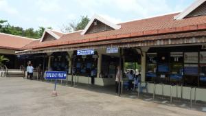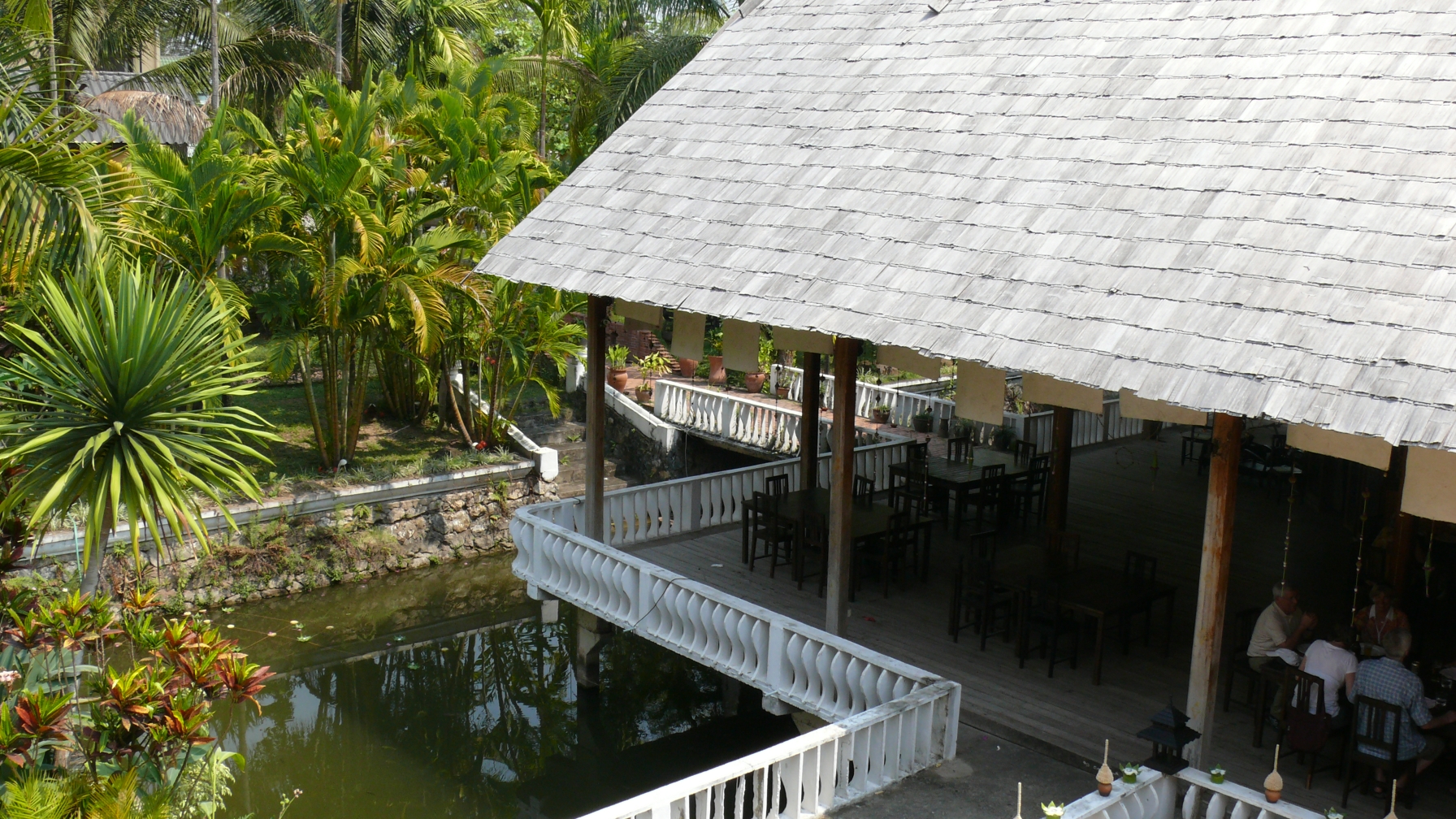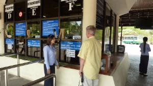 Zuerst einmal brauchen wir Besucherausweise. Es gibt sie mit verschiedenen Gültigkeitsdauern, und sie sind mit einem Lichtbild versehen. Die Fotos werden gleich vor Ort von Computerkameras gemacht. Und dann gibt es Mittagessen, heute in einem ganz urigen, offenen Lokal mit Khmer-Küche.