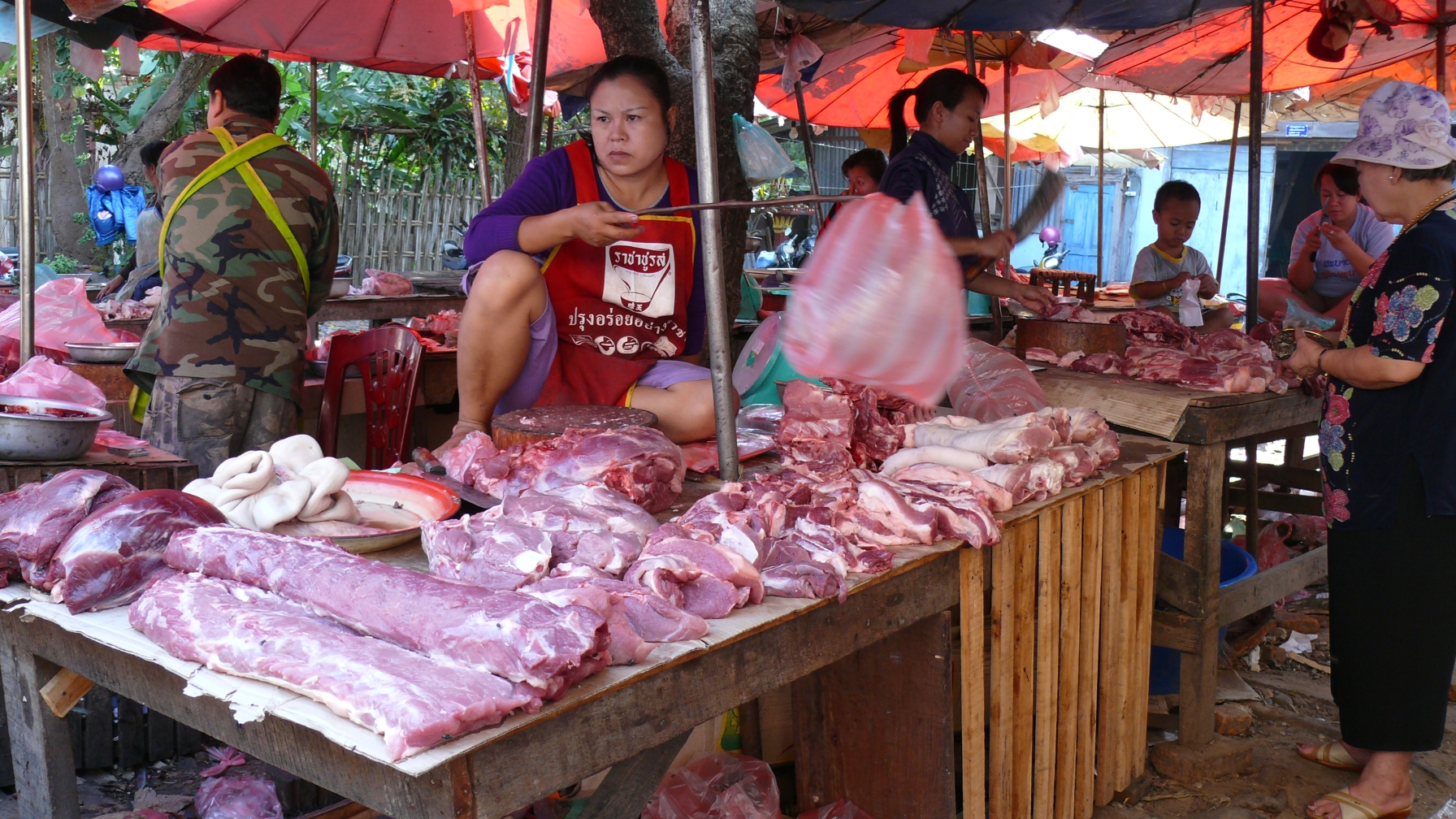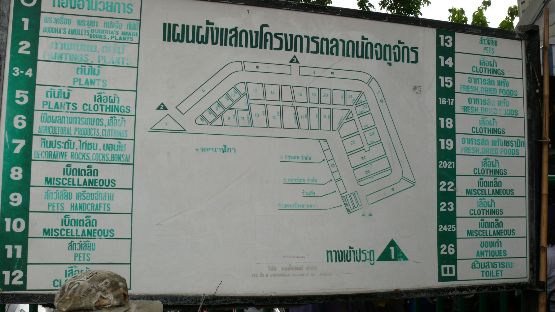 Interessanter ist aber sicher Chatuchak, der Wochenendmarkt. Er beheimatet auf über 100.000 m² mehr als 15.000 verschiedene Läden. Pro Wochenende kommen hierher etwa 200.000 Besucher. Obwohl in Bereiche aufgeteilt, ist der Markt für uns unüberschaubar, wir verlaufen uns, gehen im Kreis und landen irgendwo, wo wir gar nicht hinwollten. Nur gut, dass wir nichts Bestimmtes suchen. Aber wenn man sich hier auskennt, bekommt man wohl alles. Wir lassen uns treiben durch die engen und unüberschaubaren Gänge und zerfließen so langsam in der Sonne.