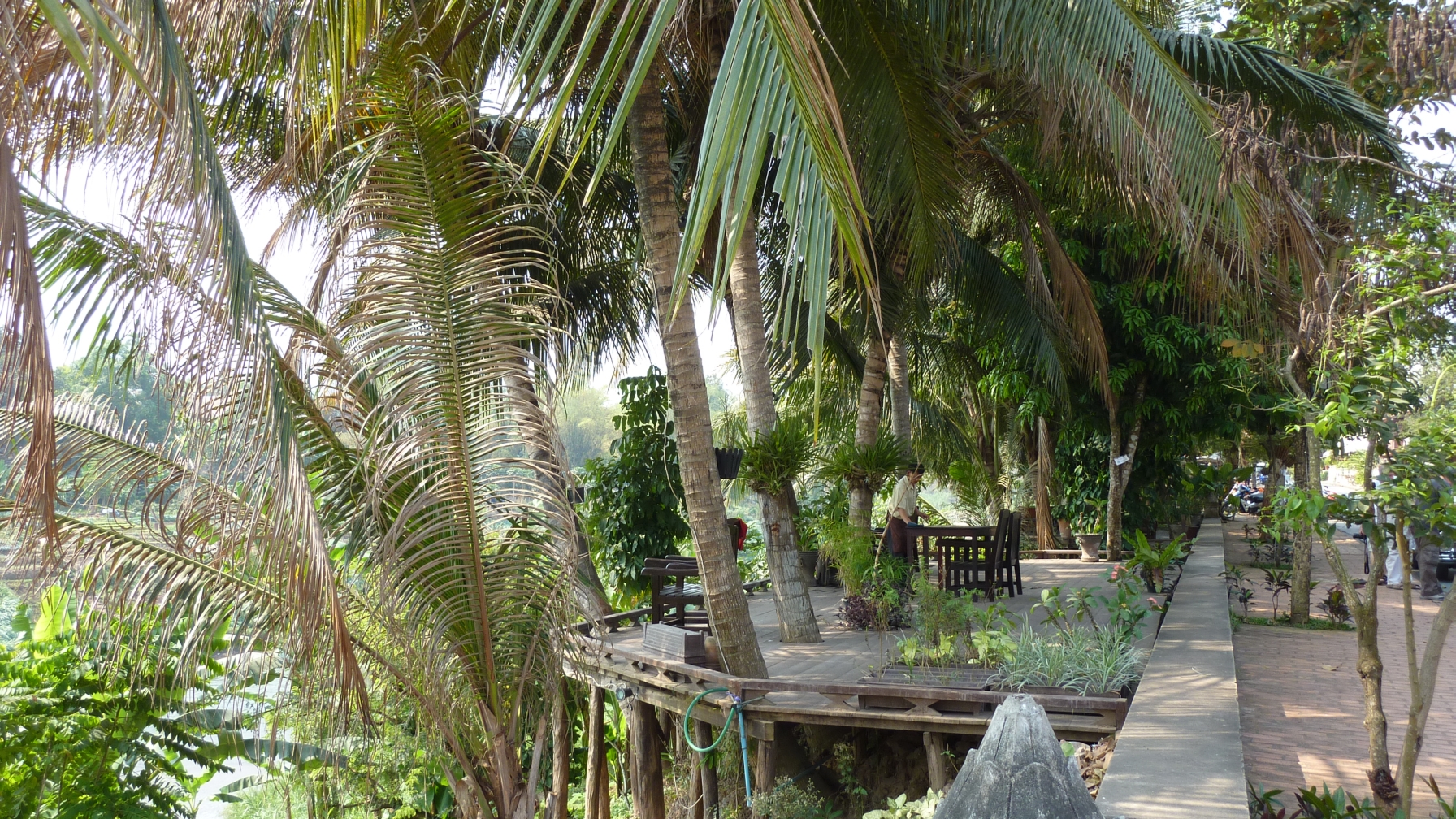 Nach der Fahrt bringt uns der Bus zurück nach Saigon. In My Tho machen wir Mittagspause. Die Rastanlage ist neu und durchgestylt. Alles ist auf die Abfertigung von größeren Gruppen eingestellt, aber das Essen ist gut. Eigentlich ist es zu viel, dreimal am Tag zu essen, aber wenn man dann mit den anderen zusammen am Tisch sitzt, … dann bestellt man halt auch eine Kleinigkeit.